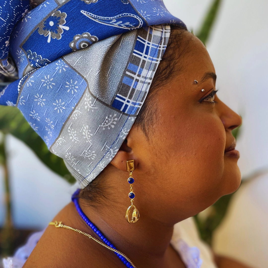 Voltar para a página inicial   >   Coleção: Santo Guerreiro   >   Brinco Azul Dourado